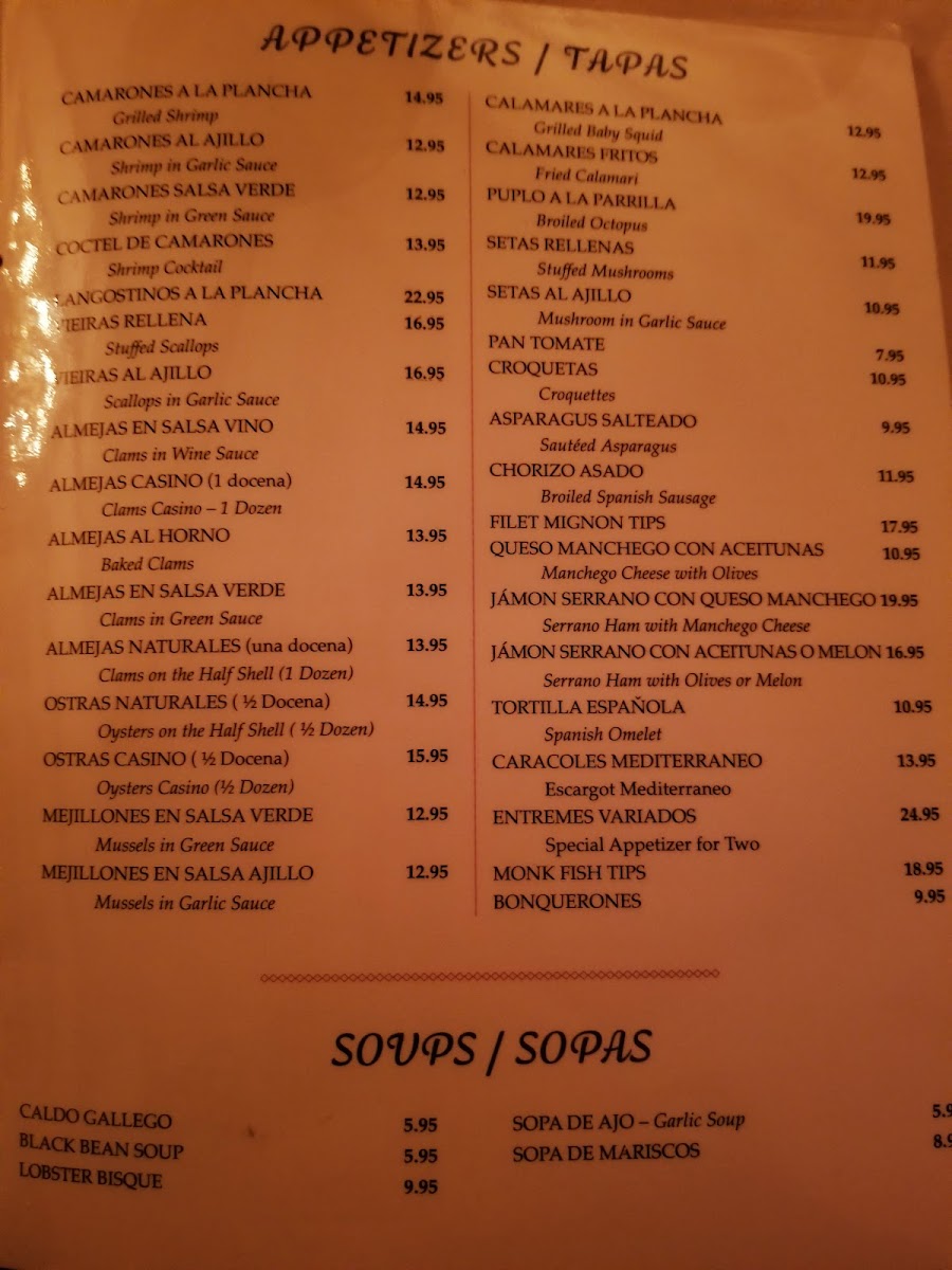 Guests can expect standout items like the Paella Valenciana con Langosta, rich with lobster and saffron-infused rice, or the Pulpo a La Parilla, tender grilled octopus that captures the essence of Mediterranean coastal cuisine. Alongside these, offerings such as Fried Calamari and Churrasco provide flavorful options that pair nicely with the warm, inviting atmosphere of the restaurant.