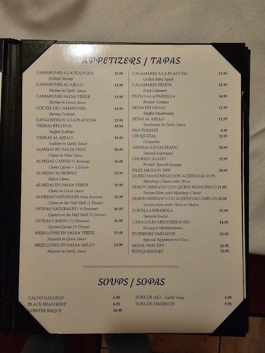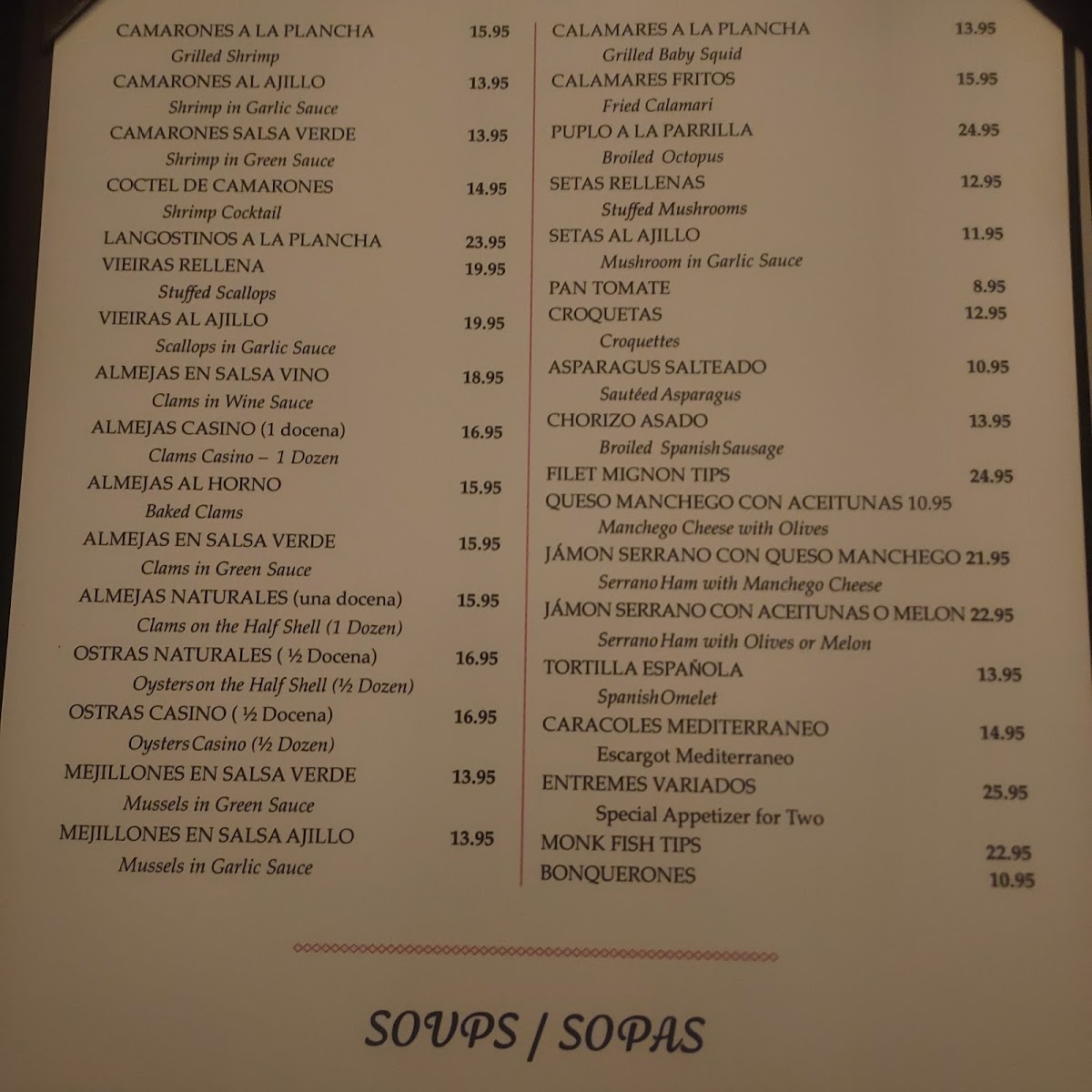 Mediterraneo offers a thoughtfully curated menu centered around classic Spanish flavors with a focus on fresh seafood and hearty, satisfying dishes. The menu strikes a comfortable balance between traditional favorites and generous portions, making it well-suited for both intimate dinners and casual group gatherings.
